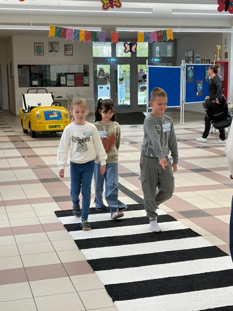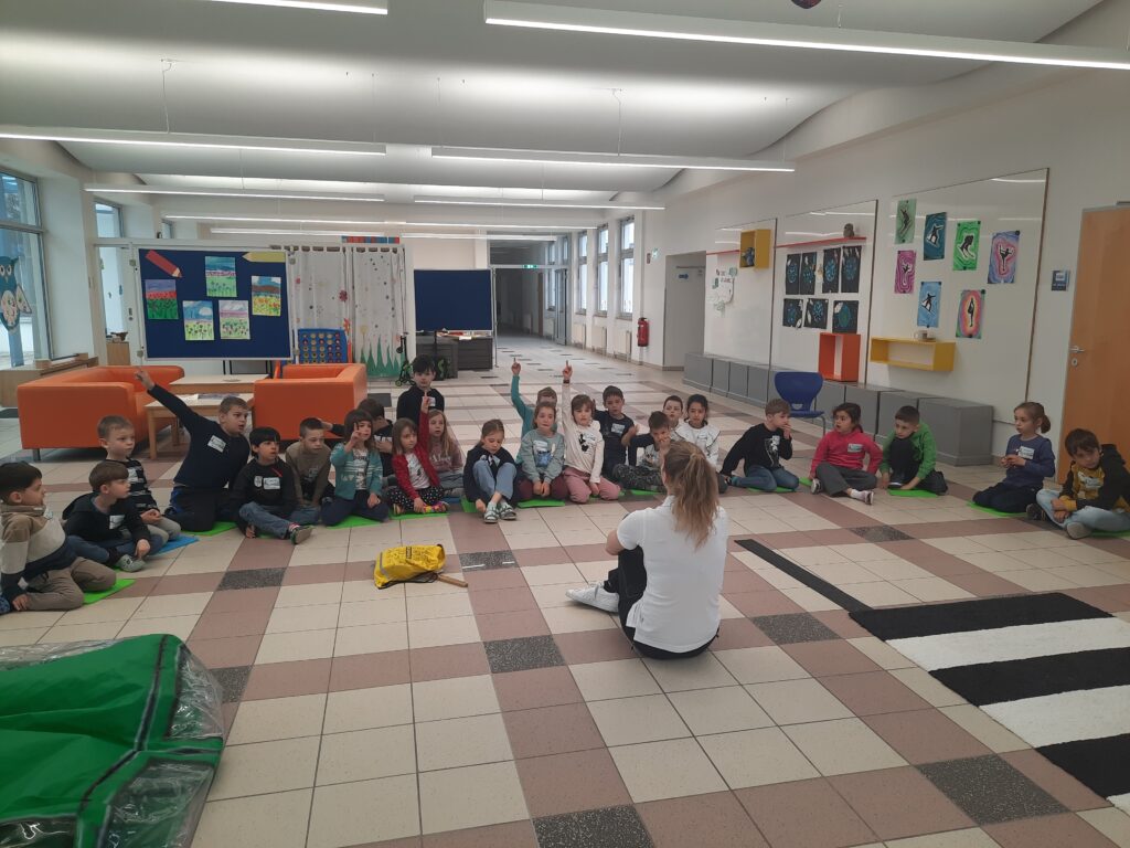 Mit Spannung erwarteten die Kinder der 1. Klassen die Aktion „Blick und Klick“, eine Veranstaltung der AUVA & des ÖAMTC im Rahmen der Verkehrs- und Mobilitätserziehung.