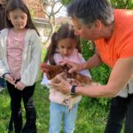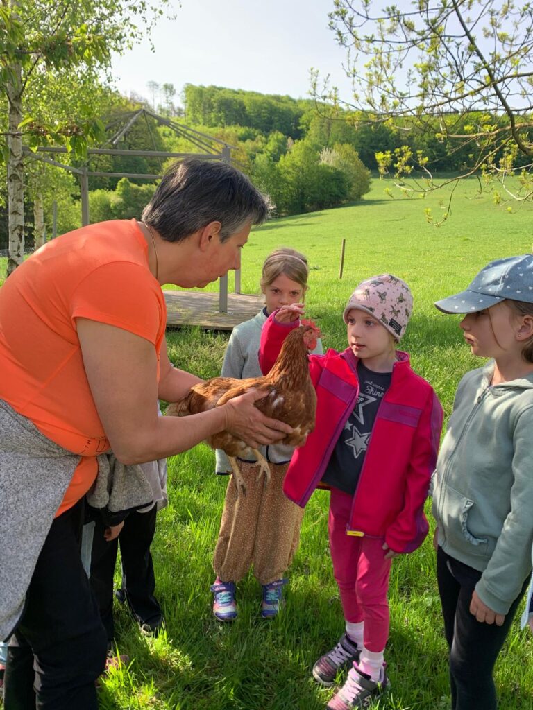 Dort konnten die Kinder Hühner mit frischem Gras füttern, sie beobachten, angreifen, einfangen – und sogar frisch gelegte Eier aus den Nestern einsammeln.